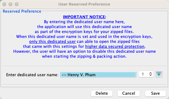 6. The 'File->Reserved User Preference' allows user to set the display name on application title.